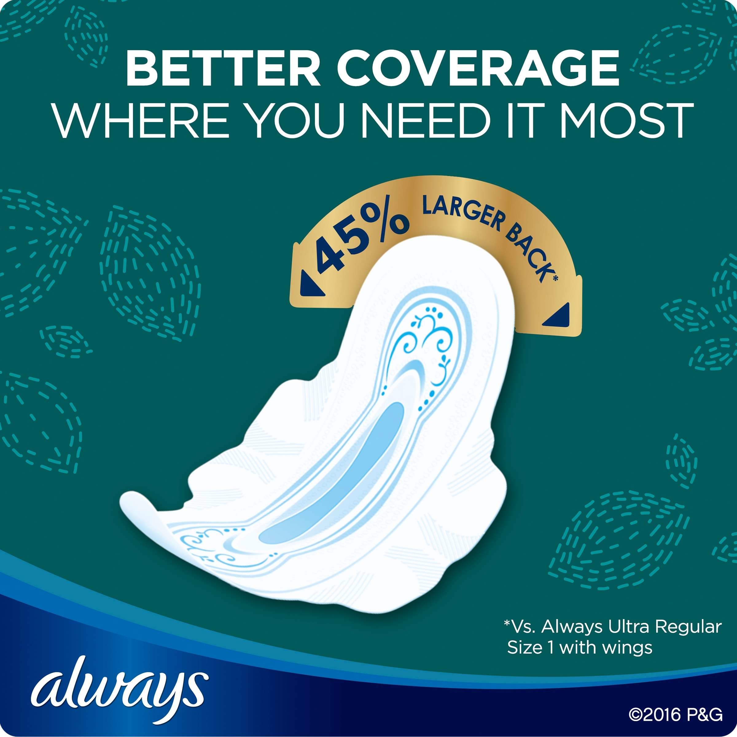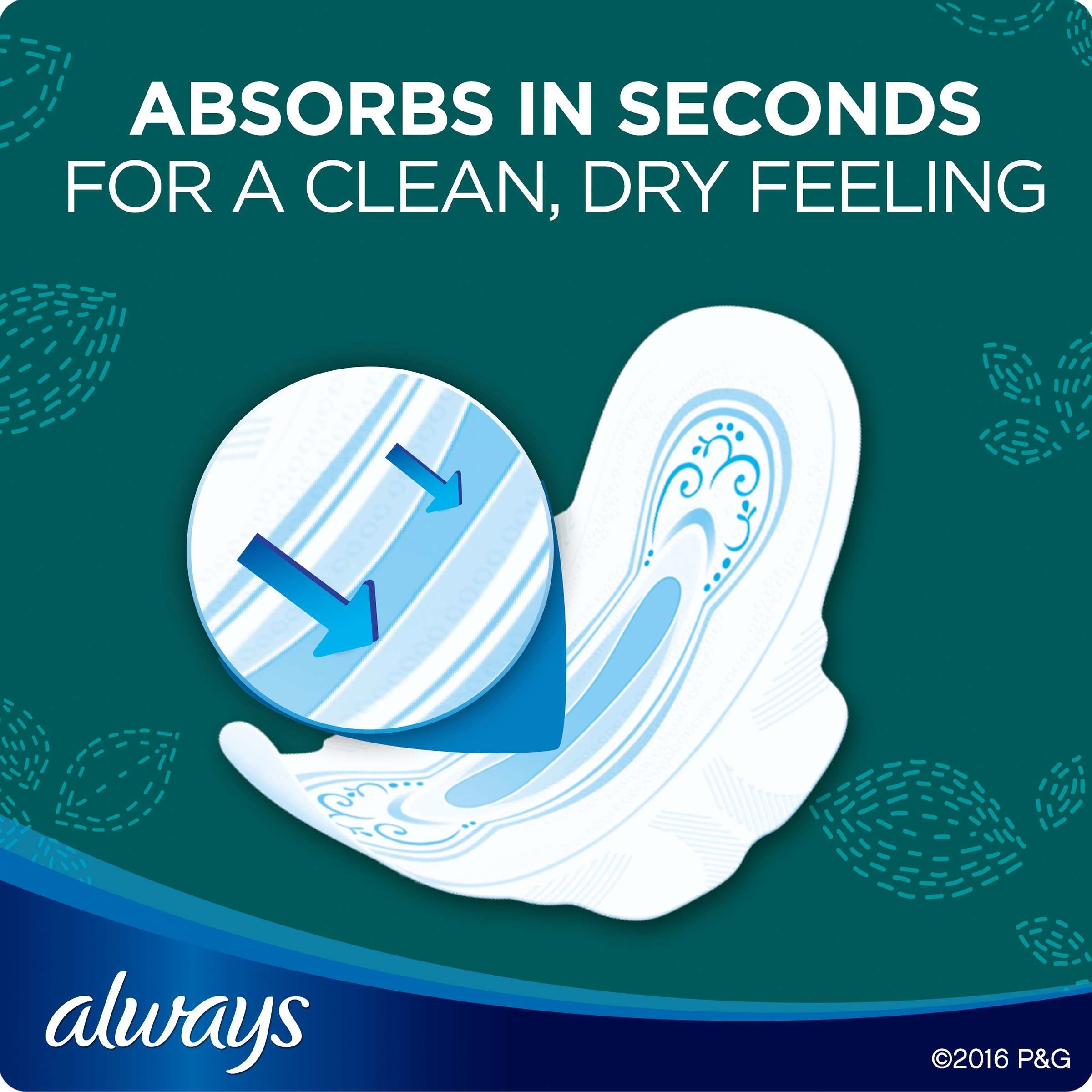 • LeakGuard核心層快速吸收,帶來持久清潔感和乾爽感覺