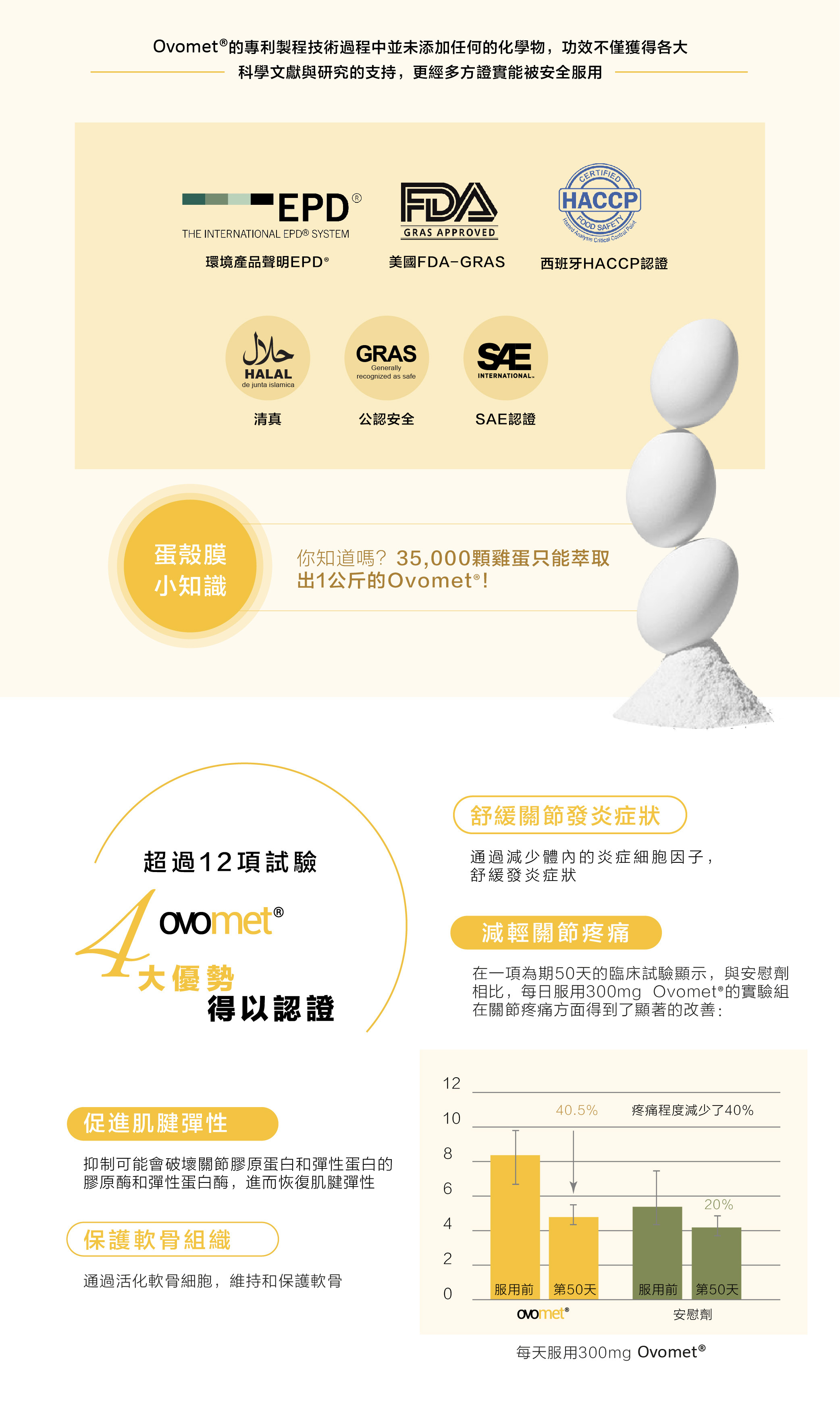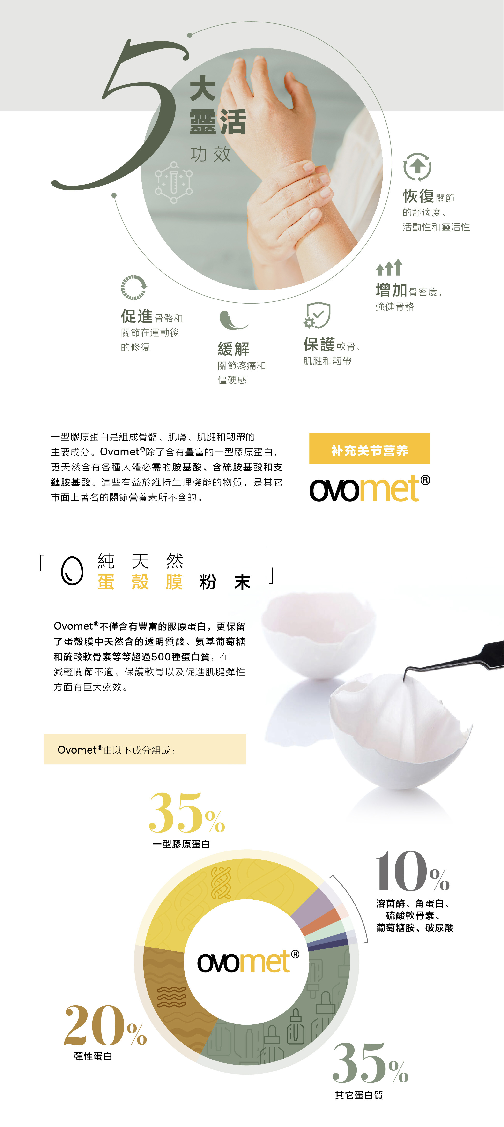 多國安全認證的 Ovomet® 在服用 5 天就能減輕關節不適